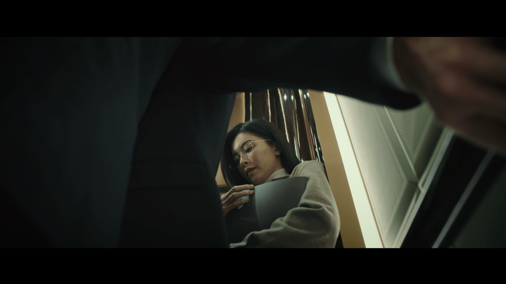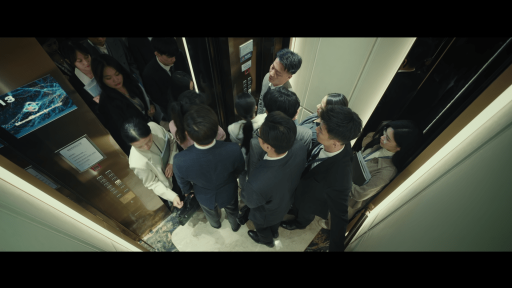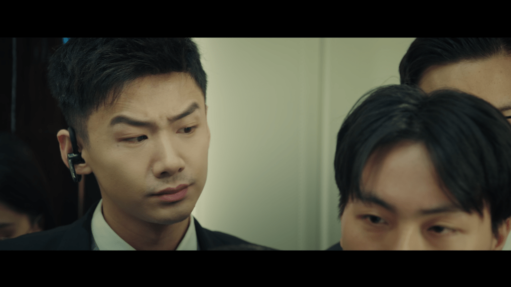 Here’s how Mobius threads the needle. In Episode 2, 28 minutes in, we are given a flight plan. Our romantic lead and main character Ding Qi and his potential romantic partner An Lan share an elevator ride. At first the ride is just the two of them catching her up on Ding Qi’s new position as security for her CEO and hints of intimacy brewing. Their intimacy gets interrupted by a flow of people onto the elevator making the space instantly cramped. Here’s where the protector dynamic starts, Ding Qi grabs two hand rails creating a safe space around An Lan who now occupies the corner of the car. As the elevator starts to move it’s important that we see insecurity and then comfort come over An Lan as she doesn’t have to rub shoulders and jostle with the office crowd because Ding Qi is shielding her. Ding Qi looks back at her and checks on her and they exchange glances letting him know that she is fine. Then after we see her smile a careless passenger steps on the foot of Ding Qi. Now normal social etiquette would have most people just be uncomfortable but that’s not what you’d want from a masculine hero. A modern masculine hero needs to stand up for himself in a socially acceptable way though. Ding Qi’s solution was to politely speak up “You’re on my foot.” loud enough that those in his vicinity could clearly hear him but soft enough that only those in his immediate vicinity would hear and everyone could pretend except the offender could pretend like they didn’t hear anything. This allows everyone to save face in the situation where the person stepping on his foot could move and everyone gets to pretend like nothing happened. However, the offender doesn’t move. This time loud enough for the entire car to hear and with an aggressive tone Ding Qi repeats himself, the man turns around sees the challenge and backs down.